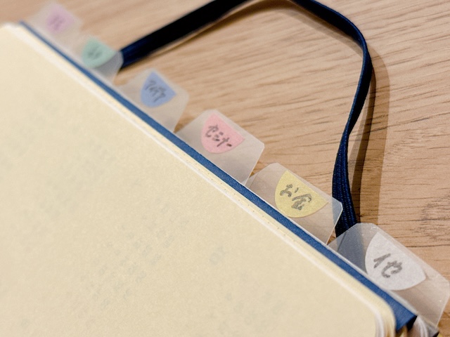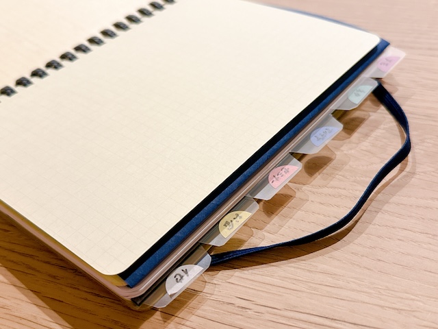 目標管理用の手帳にはインデックスがあるのですが、これもクリアファイルを切って穴を開けて自作しています。