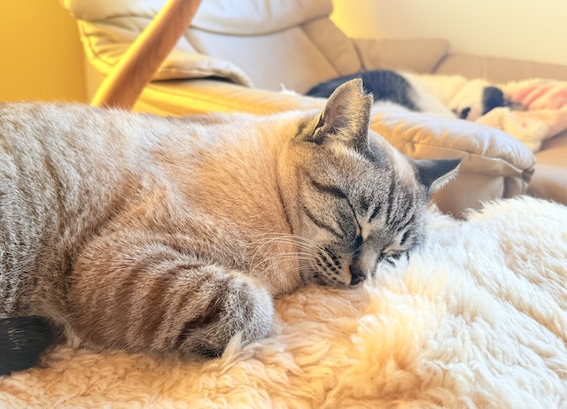 我が家のお猫様は日向ぼっこが大好きなので、朝日がのぼるのと同時にバリバリボウルをお日様スポットに移動してあげるのが私の日課。