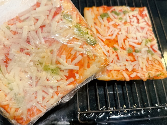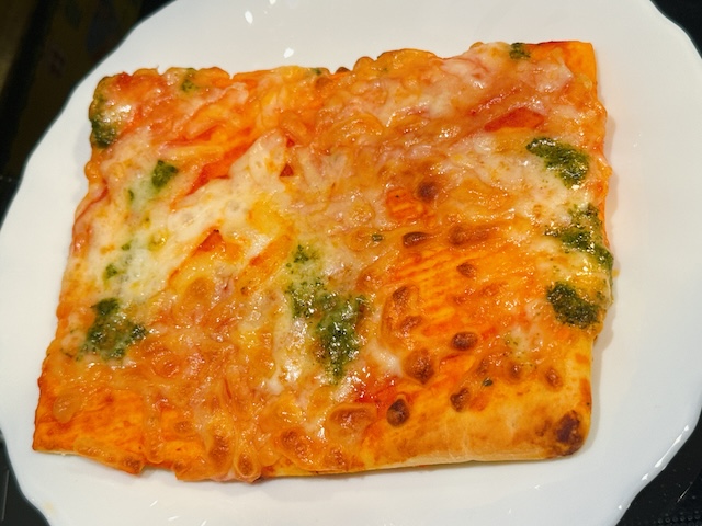 さっそく食べてみました!はいっ美味しい!バジル&トマトソースの香りが本格派で、チーズも伸びる伸びーーる!