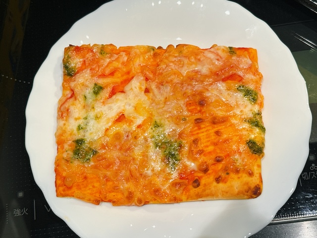 香りもいいし、めっちゃ美味しそう!追いトッピングしなくてもいい感じじゃーーん!これ一枚で小腹十分満たせますって感じの大きさ◎
