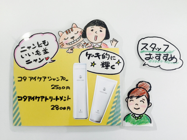 いや〜、どのPOPもすごい!サロンの商品って、気になるけど聞いたら押し売りされそうだしなかなか聞けない…。そんな風に考えているお客さんって結構多いんです。そんな時、POPの出番です!さぁ、POPはまだまだあります☆