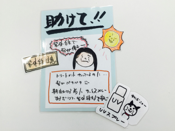 「プールに行った方へ」というこちらのPOPは、商品の使い時を絞ることで、プールや海水浴に行く人はじっくり見ちゃいますよね!トリートメントのPOPも、読んでいるうちに商品に興味が湧いてきました。