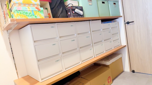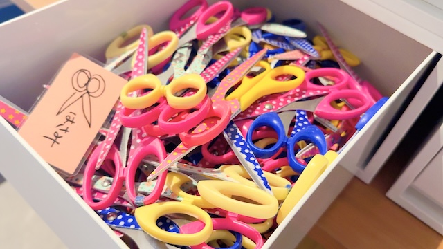 POPセミナーを開催した大阪から70人分の大量の文具たちが帰宅しました!文具たちはすべてここで管理しています。