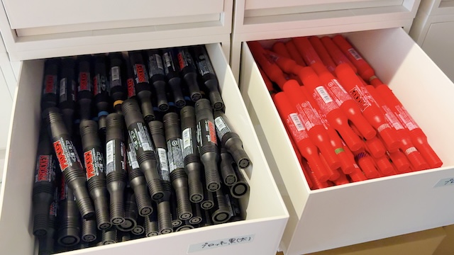 POPづくりには欠かせないプロッキーの黒色は300本近くあるかな?