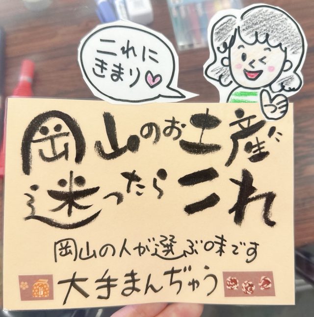 こちら、なんとセミナーでくろさんが書いたPOPの岡山名物「大手まんぢゅう」!POPを見て気になっていたんです!!