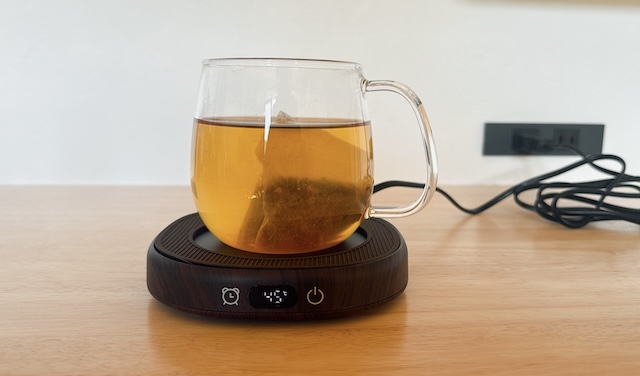 いつ飲んでも熱々の状態って思っている以上に幸せ!シリコンを外すと結構大きめのものも置けるので、猫たちの飲み水をぬるめに温めるのにも使っています。