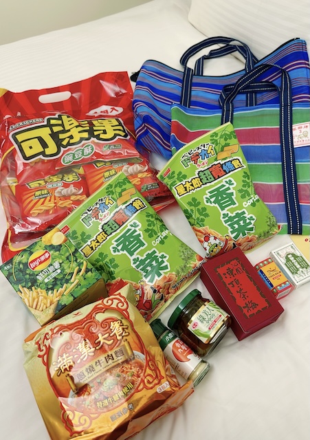 それはさておき、台湾の定番スナックや、台湾人の友人ジャリンがおすすめしてくれたインスタント麺、パクチー味のスナック、スパイスなどを次々カゴに放りこんでいきます!