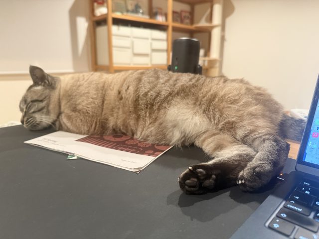 すぐに鳴いて要求するてつに比べ、ちょびは静かに我慢していることも多いと思うので、「ブラッシングして」と催促してくるときは、仕事に集中していても一旦手を止めて、めいっぱいスキンシップを図るようにしています。