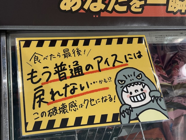 話題のカジゴンは、まさに「破壊感」というのにピッタリの食べ心地!そこで、怪獣と危険マークで目立たせました。