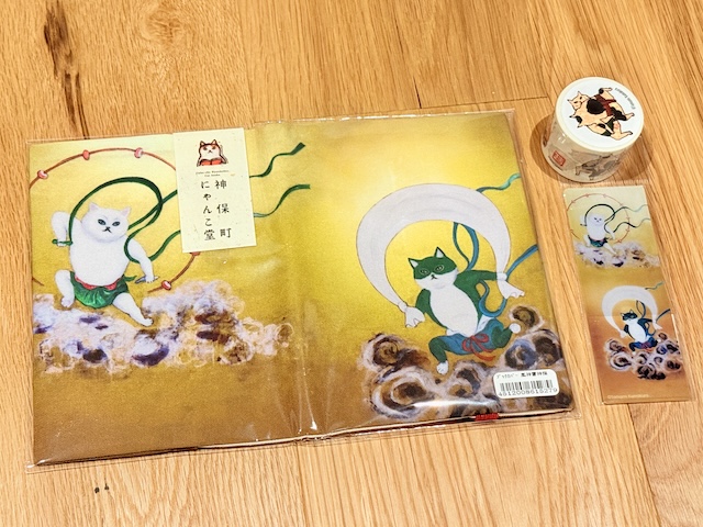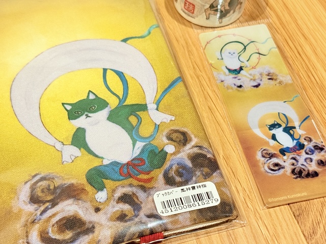 我が家のちょびさんそっくりの風神が描かれたブックカバーは手帳用にしようと思い購入。しおりも買っちゃいました。